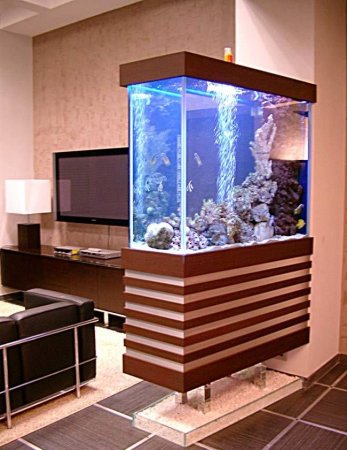 Задачей этого очерка не было перечислить все преимущества использования аквариума в интерьере. Их столько же, сколько индивидуальных стилей у людей. Это просто попытка обратить ваше внимание на аквариум. Кто знает, может быть, и вы воплотите свое личное своеобразие в дизайне интерьера, погрузившись в наблюдение прохладных вод за стеклом?