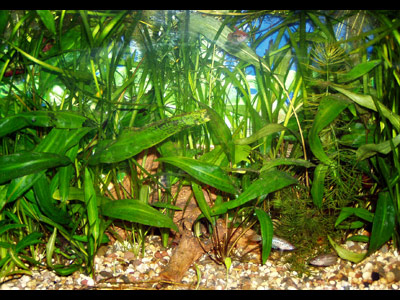 Для любителей стиля модерн, сочетания простого удобства и фантазии подойдет аквариум, в котором на синем фоне без всякого порядка произрастает лес всяких растений. Такой стиль акваскейпинга так и называется – Джангл, то есть джунгли. Но в том же стиле могут быть и сложные пресноводные аквариумы, подобные водам рек и озер Амазонии и Африки. Вода в них имеет теплые оттенки – от зеленых до красноватых.