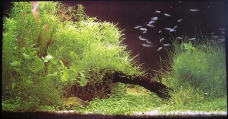 Европейский «дикий» стиль замечателен сочетанием каменной обстановки, деревянных балок и необычного буйства всякой зеленой поросли. Влияние такого мироощущения сполна отразилось в искусстве «голландского аквариума», главным для которого является яркая, сочная подводная растительность зеленого и красного цвета. Прелесть этого заброшенного уголка природы можно подчеркнуть соответствующей подсветкой. О значении освещения нельзя забывать в любом случае, а аквариумы с растениями должны освещаться ярче других. Это тот самый случай, когда аквариум можно разместить в уголке отдыха на самом видном месте.