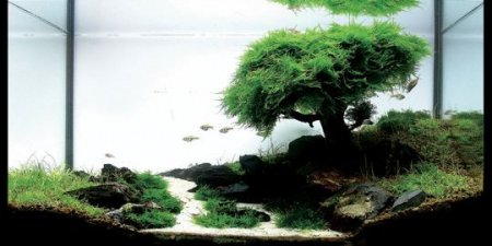 Из этнических стилей нельзя не упомянуть самый интересный сейчас японский. Для него типичны простор, наличие большого пустого пространства, прямота линий, а на фоне всего это – присутствие какой-то маленькой, но изящной детали. Это стиль садов камней, карликовых деревьев и икебаны. Не случайно в 1980-х годах японский дизайнер Такаши Амано привнес особенности японской культуры в аквариумистику, став одним из основателей акваскейпинга, что дословно означает искусство аквариумных пейзажей. В стиле Такаши Амано на фоне обычных для надводного мира невзрачных камней, расположенных в определенном порядке, поросших мхом коряг и пустого пространства вы можете вдруг обнаружить неожиданное буйство жизни в виде стайки маленьких невзрачных рыбок. Это, конечно, только один пример.