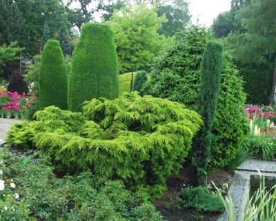 Зеленый – основной цвет в садах наших широт. Он служит фоном для других красок и в то же время является самостоятельным цветом. Аккуратно подстриженные зеленые живые изгороди – идеальные кулисы для пестрых цветников, а вечнозеленые растения зимой, служат прекрасной зеленой рамой для монотонного пейзажа. Просто чудо!