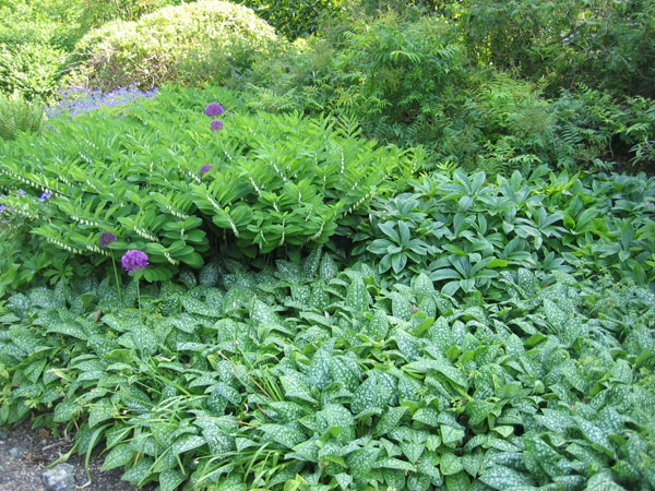 Бывают сады, полностью выдержанные в зеленой гамме. Это успокаивает, но кому-то может показаться монотонным. А вот отдельные клумбы, оформленные только в зеленых тонах, будут выглядеть довольно оригинально.