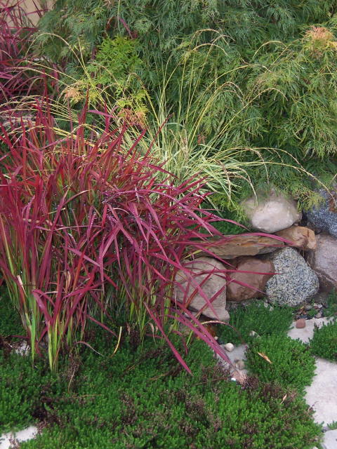 Красное с черным дает еще более мистический эффект чем багряные листья. Шаровидный барбарис Тунберга «Атропурпуреа Нана», представляет собой маленькие темные листики длиной 2 см, окрашенные в темный пурпурно-коричневый цвет, а осенью, перед листопадом, они становятся огненно-красными.
