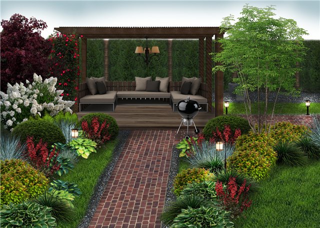 - в третьих, дизайн-проект дает возможность запланировать все строительно-инженерные работы: коммуникации (освещение, дренаж, полив и пр), дорожки и тропинки, площадки для отдыха, устройство беседок, пергол и других архитектурных элементов, а так же устройство водоемов и каменистых садов. На этом этапе еще можно вносить правки и дополнения, без серьезного материального ущерба.