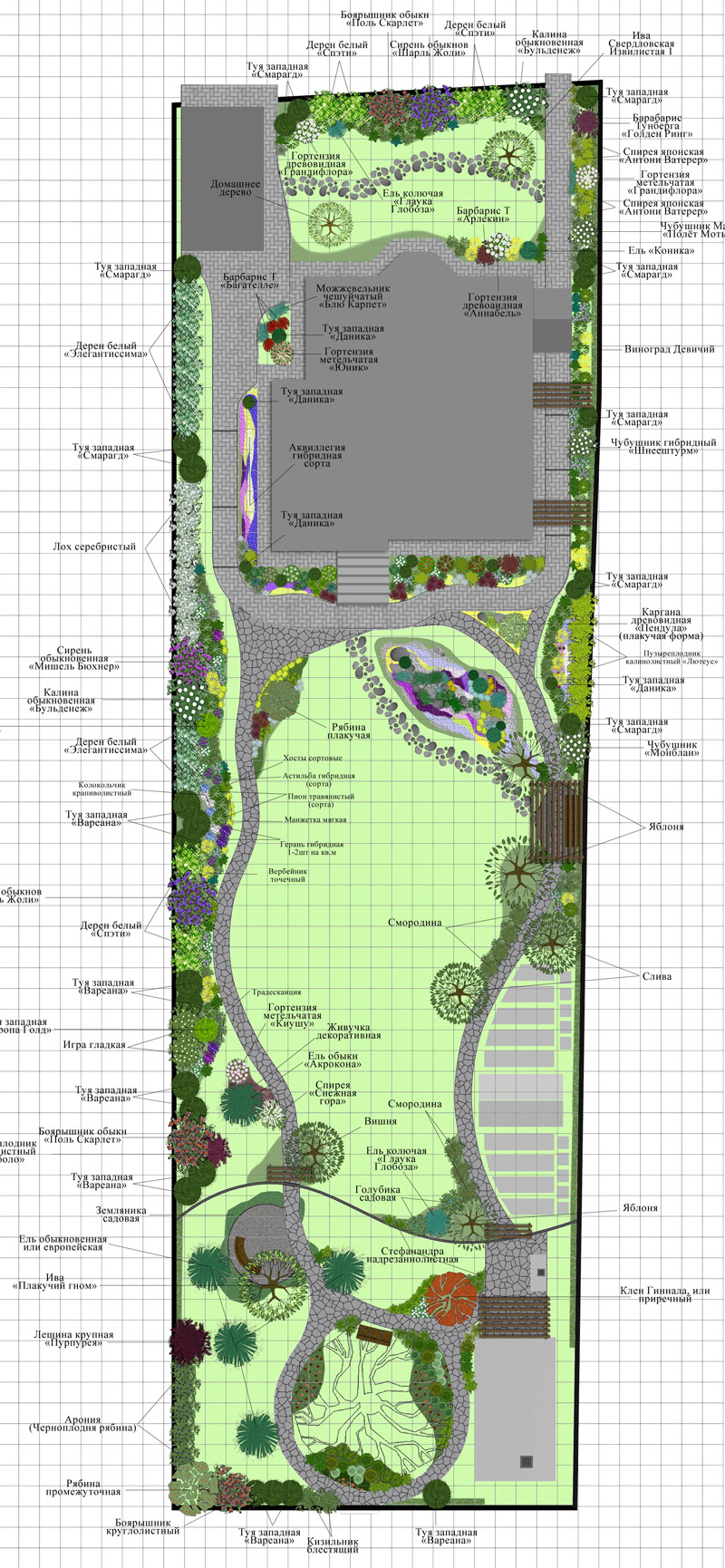 На этом этапе можно определить основные функциональные зоны сада, соединить их дорожками, разместить архитектурные элементы и наметить зеленые насаждения. Предлагаемые варианты обсуждаются и согласовываются с заказчиком.