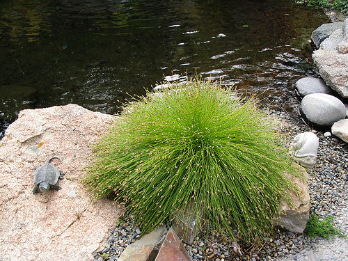 Например, камыш и болотные ирисы, больше подходят для больших водоемов от 5 м2, а здесь будут более уместны сибирские ирисы, в качестве растений напоминающих своей листвой прибрежные, болотные. |