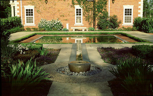 Формальные водоемы со строгими геометрическими очертаниями, используют в регулярных садах, и там, где участок сада тяготеет к регулярной планировке. Их можно примкнуть к стене, если водоем прямоугольный, квадратный или полукруглый.