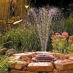 Фонтан является всего-навсего насадкой которую монтируют непосредственно на выходе подводного насоса. Высоту насадки (распылителя) можно отрегулировать при помощи труб. Форма фонтана может быть различной – от колокольчатой до бьющей ключом. Главное – выбрать насадку.