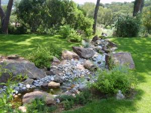 У ручейков обязательно должен быть исток в виде каменистого каскада, грота, какой-нибудь емкости вроде разбитого кувшина, или пары крупных камней имитирующих ущелье. Такой исток хорошо делать в углах, или у подножия деревьев и кустарников. Логично, если ручеек куда-то впадает, а не просто обрывается. Можно плавно оборвать ручей осыпью из гравия в сочетании с более крупными камнями. Парой кустарников, в которых он якобы теряется. Либо закончить его небольшим водоемом - в зависимости от места, где он расположен.