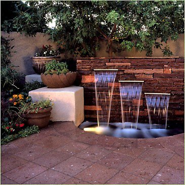 Иногда в качестве фонтанов используют малые архитектурные формы. Это кувшины, барельефы, небольшие человеческие скульптуры, фигуры различных животных и многие другие. Ассортимент таких изделий огромен, и всегда можно подобать что-то на любой вкус. Водяные струи могут быть различных размеров от тоненьких до широких потоков. |
