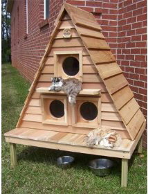 Для них можно сделать приподнятый домик, где-нибудь в самом высоком месте сада или соорудить специальную конструкцию в виде деревянных веток, вкопанных в землю. Эту конструкцию можно сделать с несколькими «этажами», на любой случай – для дождливой погоды – этаж с крышей, а для солнечной – открытую террасу-полочку. |
