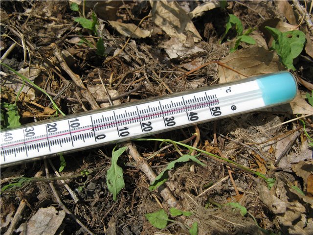 До этого, до дождей, стояла «кошмарная» жара. Столбик термометра поднимался до +35+37С в тени. Выкладывал термометр в полдень на делянки, жидкость в колбе упиралась в самую «макушку» колбы и показывала +57С, а если бы измерительная шкала была длиннее, то не удивлюсь, что показывало бы за +100С.