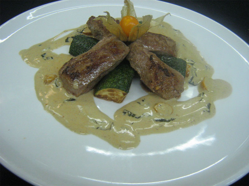 Торнедо из говяжьи вырезки с гарниром из цукини и шампиньонов
