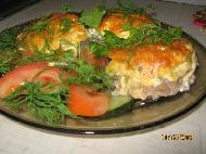 Фаршированные кольца кабачков и картофель, запеченные в духовке