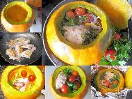 Тыква, фаршированная курицей с овощами, запеченная в духовке.