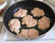 Через несколько минут добавить в мясо по вкусу соли, черного молотого перца, молотого кориандра, 1 сырое яйцо, 2 столовых ложки крахмала, мелко порезанный чеснок и рубленную зелень укропа. Выкладывать полученную массу столовой ложкой на хорошо разогретую сковородку, смазанную растительным маслом и жарить котлетки так же, как оладушки, до золотистого цвета.