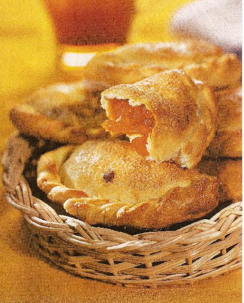 5. Сложить лепешки вдвое и защипнуть края, загибая их внутрь. Разогреть духовку до 180 градусов. Пирожки выложить на смазанный маслом противень, смазать взбитым яйцом. Выпекать 30 минут.