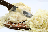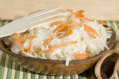 Для приготовления рубленой квашеной капусты также используются поздние сорта. Плотные тугие вилки очистить от верхних загрязненных и разорванных листьев, разрезать на две или четыре части, после чего нашинковать полосками шириной 3—5 мм. Обычно подготовленную таким образом капусту кладут в банки или в небольшие кадки, предварительно посолив и хорошо перемешав ее в большом сосуде. Количество соли не должно превышать 20—25г на 1кг капусты. При использовании соли в большем количестве квашеная капуста становится очень соленой, а, кроме того, излишнее количество соли задерживает развитие молочнокислых ферментов, в результате чего создаются условия для развития нежелательных микроорганизмов. Если количество соли ниже необходимого (15—17г на 1кг капусты), то она становится мягкой, так как в ней начинают развиваться гнилостные бактерии.