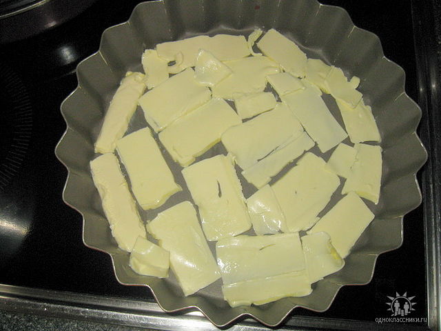 заполняем дно кусочками масла |