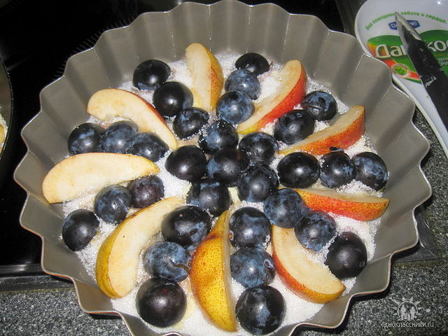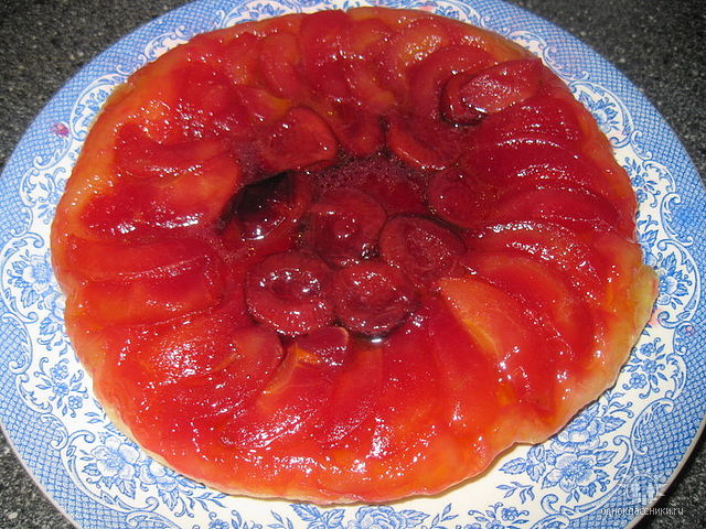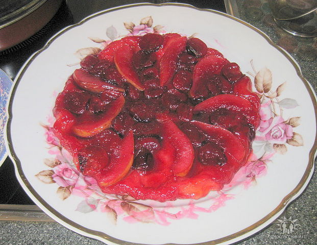 Пирог "вверх ногами" с яблоками и сливами |