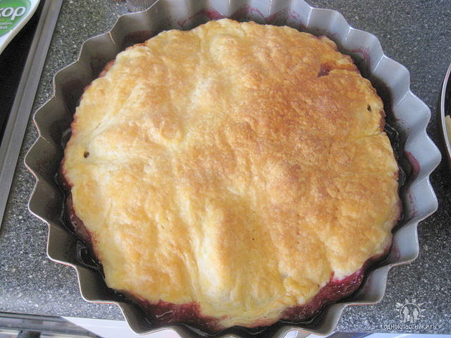 Для этого пирога использовала слоеное дрожжевое тесто, а в остальном, все по рецепту предыдуших пирогов "вверх ногами.