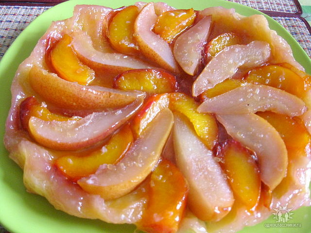 Пирог "вверх ногами" с персиками и грушами |