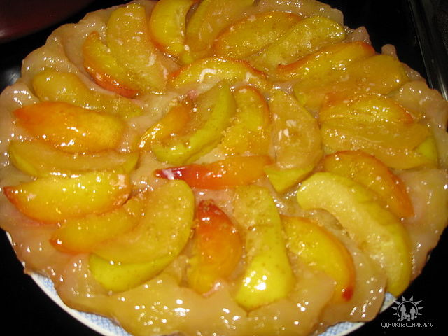 Пирог "вверх ногами" с персиками и сливами |