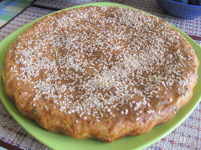 Пирог из кабачка с зеленью петрушки, укропа и кунжутными семечками
