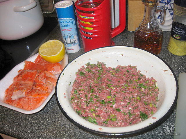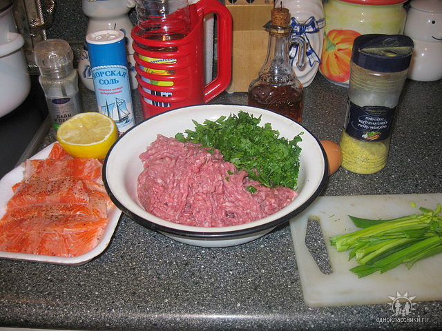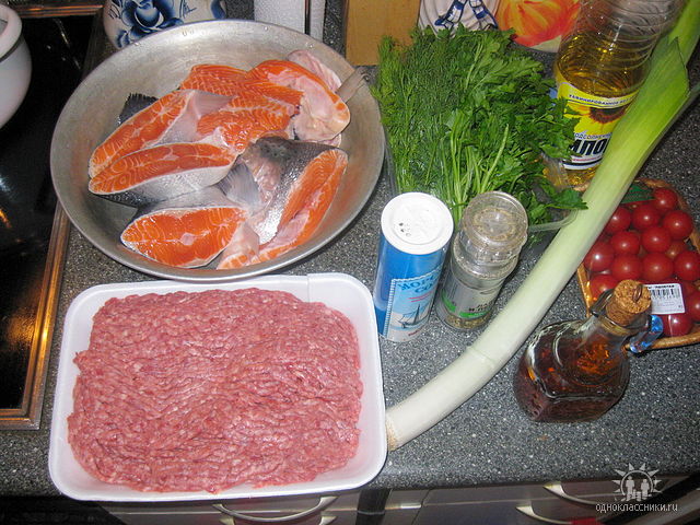 Набор продуктов для царских котлет (рыбу отделила от косточек, сделала филе)