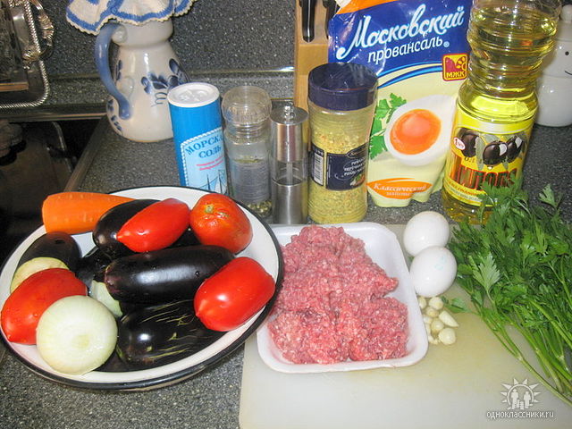 Набор продуктов для запеканки - баклажаны с мясным фаршем