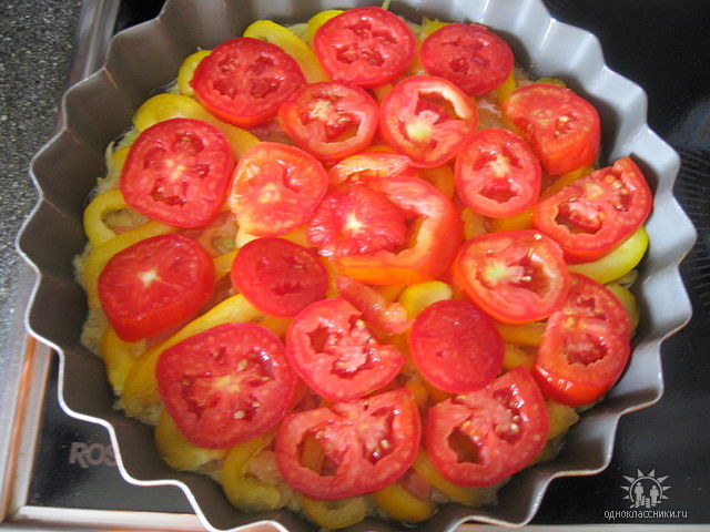 Ставим в духовку минут на 30, при температуре 200 град. Затем вынимаем, засыпаем тертым сыром и доводим до готовности еще минут 15.