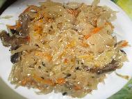 Для этой запеканки потребуется сырой картофель натертый на средней терке и жареные грибы с луком.