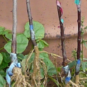 Второй способ выращивания саженцев низкорослой яблони основан на том, что не только корни клоновых подвоев способны уменьшать габариты дерева, но и сама древесина. Для этого между сильнорослым семенным подвоем (дичком) и сортом прививается вставочное звено слаборослого подвоя длиной 18-20 см. Меньшая длина вставки нежелательна, так как ее влияние на силу роста также уменьшается.