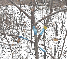 Сорта  привиты  высоко (1-1,5 м) от земли,  а там в сильные морозы «теплее»,  чем на уровне снега.  В итоге многосортное дерево в целом получает меньше зимних повреждений, лучше растет и плодоносит.