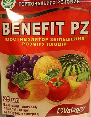 Увеличивает размер плода за счет стимулирования деления клеток, способствует получению более ранней продукции, повышает способность растений плодоносить в более раннем возрасте, повышает вкусовые качества продукции, выравнивает размер плода, делает плоды одинаково большими.