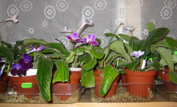 Под решетку наливается вода, а сверху ставят горшки с растениями. Минус такого способа в том, что не видно, сколько воды осталось в поддоне, поэтому следует быть особенно внимательным и не допускать полного испарения влаги. Такой способ незаменим для содержания стрептокарпусов и сенполий-миниатюр. У взрослых сенполий можно просто обкладывать поверхность горшка сфагнумом.