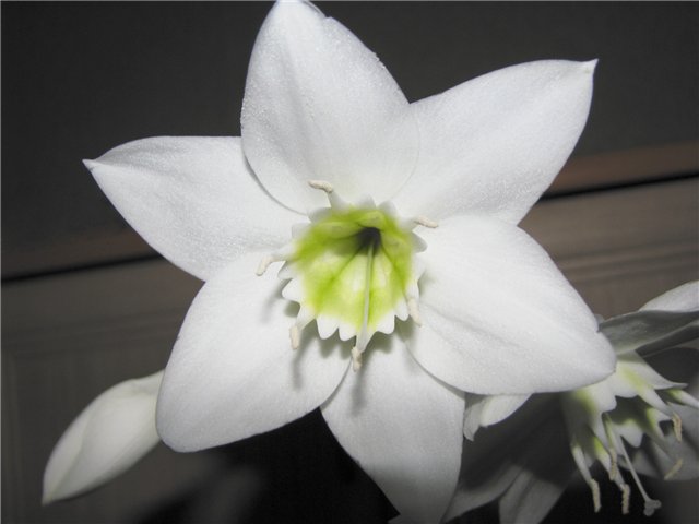 Потом стала выносить его на лоджию на весь теплый период. Иногда эухарис пребывал там довольно долго. Однако низкие температуры (+5оС) особым образом на цветении не сказывались.