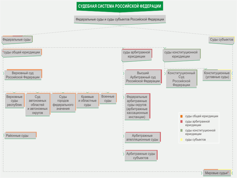 Судебную систему РФ составляют федеральные суды и суды субъектов Российской Федерации.