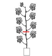 Со второго года плодоношения (при хорошем развитии куста) нагрузка повышается за счет формирования на отдельных рукавах усиленных звеньев – две плодовые стрелки, а в дальнейшем, через год - два, после того как куст наберет силу можно сформировать по две плодовых стрелки на каждом рукаве.