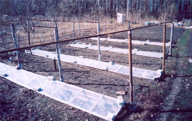 Верхний утепляющий слой можно облегчить или снять совсем – если виноград посажен в траншеи, то в это время уже можно оставить только укрытие рамами с натянутой на них парниковой пленкой. Или хотя бы сделайте отдушины для проветривания.