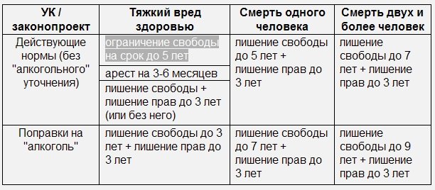 Таблица: меры наказания за нарушение ПДД, повлекшее причинение тяжкого вреда или смерть человека