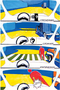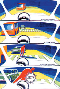 Водитель легкового автомобиля «Жигули» собирался повернуть налево с второстепенной дороги на главную с последующим проездом пешеходного перехода. Движение на главной дороге было интенсивным, и он никак не мог совершить маневр. Наблюдая за движением справа, он увидел достаточный разрыв, бросил взгляд влево - там автомобилей не было - и, как только последний автомобиль перед разрывом справа миновал перекресток, водитель начал поворачивать, как вдруг увидел перебегающего пешехода. Произошел наезд.