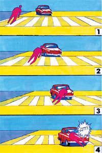 Пешеходы чаще всего не могут правильно определить степень риска - они этому не учились. Водитель обязан не допустить наезда и при неправильном поведении пешехода, так как он прошел соответствующую подготовку и принял на себя ответственность за все последствия управления средством повышенной опасности.