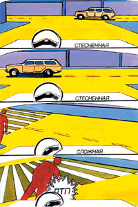 Рекомендации. Одной из основных причин ДТП при проезде регулируемого пешеходного перехода является опережение при смене сигнал светофора с запрещающего на разрешающий. Проводить такой маневр в условиях ограниченного обзора, создаваемого стоящими слева или справа транспортными средствами, опасно, ибо нередки случаи, когда при включении в светофоре красного сигнала на пешеходном переходе (особенно при большой ширине проезжей части) остаются пешеходы, не успевшие закончить переход. (П. 13.8., 14.3 ПДД.)