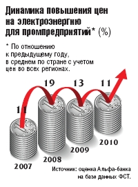 Как бы ни формировался тариф, в основу его, поясняет консультант департамента due diligence НКГ "2К Аудит - Деловые консультации" Андрей Чернавский, в первую очередь закладывается стоимость топлива для выработки энергии. Это справедливо в первую очередь для свободной части рынка. ФСТ индексирует тариф ежегодно с учетом фактической (а не прогнозируемой) инфляции, которая, впрочем, у нас является инфляцией издержек, отражая рост цен естественных монополий. (Кстати, просьба премьер-министра Владимира Путина, которую он высказал осенью прошлого года руководству ФСТ, не поднимать в этом году тарифы для населения более чем на 10%, была в некотором смысле необязательной: ФСТ увеличила средний тариф на 8,8%, что как раз соответствует росту индекса цен по итогам 2009 года). Примерно половина наших тепловых станций работает на газе, а он дорожает регулярно, с января этого года расценки подняты на 15% для промпотребителей.