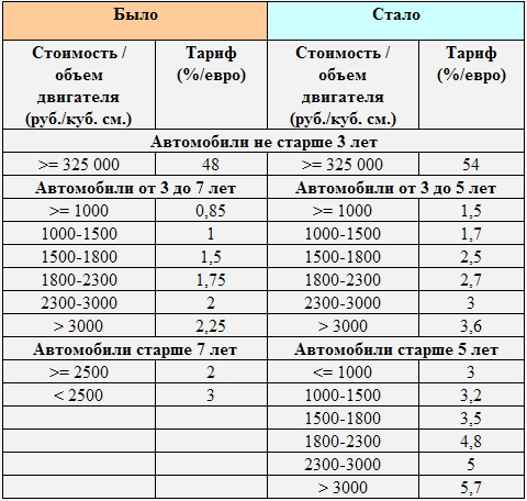 Изменения тарифов на ввоз подержанных иномарок физлицами