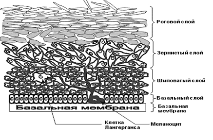 Это верхний слой кожи, тот, который вы, собственно говоря, имеете возможность видеть. Толщина эпидермиса не везде одинаковая. На коже подошв она наибольшая -1,5 мм, а на коже век - наименьшая, всего - 0,03 мм. Он предохраняет ваш организм от проникновения инородных тел и инфекций, а также помогает удерживать влагу. Он образуется из нескольких слоев живых клеток, поверх которых наслаиваются клетки отмершие.