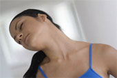 4. Голову запрокиньте назад. Постарайтесь коснуться правым ухом правого плеча (5 раз). Выполните это же движение, стараясь левым ухом коснуться левого плеча (5 раз).