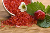 Смешайте: 6 ложек соли, 4 ложки оливкового масла и 6 ягод клубники, обладающую очищающими и антисептическими свойствами и нанесите полученный скраб на кожу.