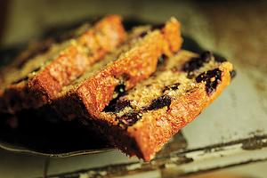 Способ приготовления. Хлеб нарезать тонкими ломтиками, смочить в смеси из молока, яиц и сахара. Ягоды черноплодной рябины промыть, засыпать сахаром, добавить тертые яблоки сорта "Антоновка".